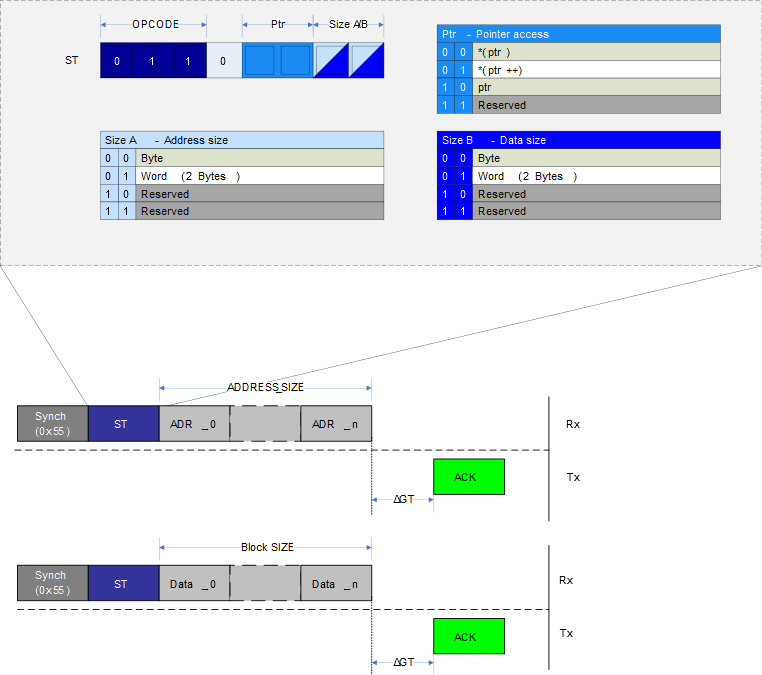 is based on indirect addressing, which means that the Address Pointer in the UPDI needs