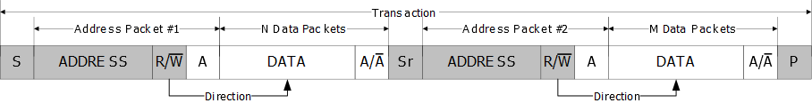 Figure 3 illustrates a combined transaction. A combined transaction consists of several read and write transactions separated by repeated Start conditions (Sr).