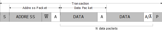 Figure 1 illustrates the master write transaction. The master initiates the transaction by issuing a Start condition (S) followed by an address packet with the direction bit set to zero (ADDRESS+W).