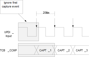 frequency, by using the UPDI event connected to TCB with Input Capture capabilities. A