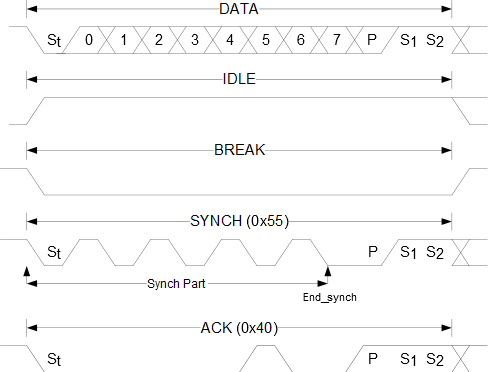 - The SYNCH frame (0x55) is used by the Baud Rate Generator to set the