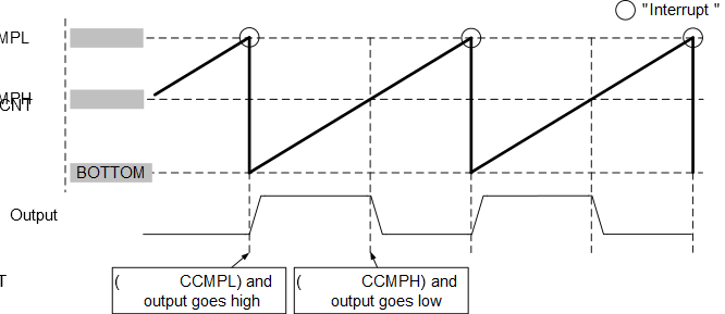 the output will be set at BOTTOM and cleared when the counter reaches CCMPH.