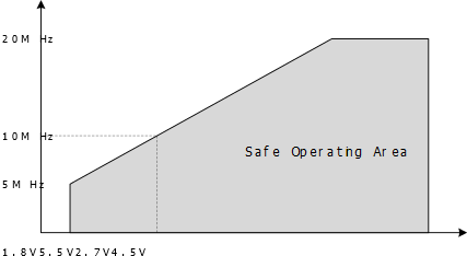 The maximum CPU clock frequency depends on VDD. As shown in the following figure, the Maximum Frequency vs. VDD is linear between 1.8V < VDD < 2.7V and 2.7V < VDD < 4.5V.