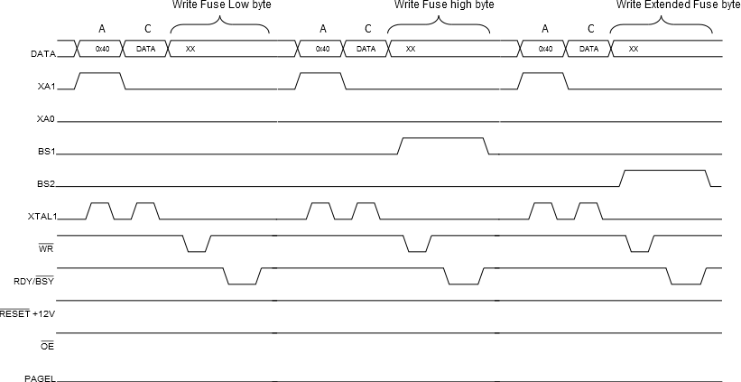 Fuse bits is as follows (refer to Programming the Flash for details on Command and Data loading):