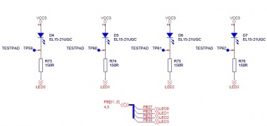 The EVK1100 provides 6 LEDs to design Human to Machine Interface during softwares development.