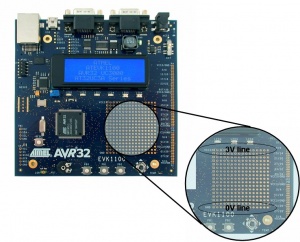 The EVK1100 provides a wrapping area to have an easy prototyping zone.