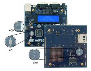 The EVK1100 provides three clock inputs for AT32UC3A0512