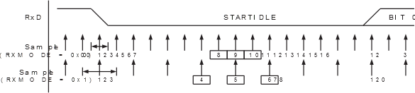 high-to-low (i.e., idle-to-start) transition on the RxD line, the Start bit detection