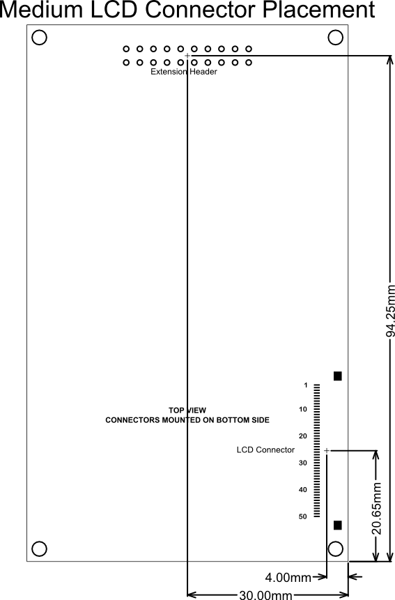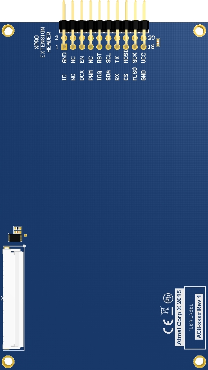 This board template is designed for boards with large displays. It is the exact same size as a medium Xplained Pro MCU board with mounting hole locations at the exact same place for board stacking purposes. More information on board stacking options can be read about in Board Stacking Options.