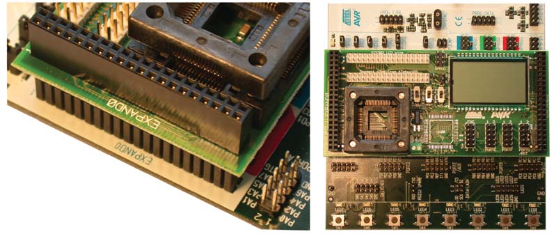 Connect STK502 to the STK500 expansion header 0 and 1. It is important that the top module is connected in the correct orientation as shown in Figure 1. EXPAND0 written on the STK502 top module should match EXPAND0 written beside the expansion header on the STK500 board.