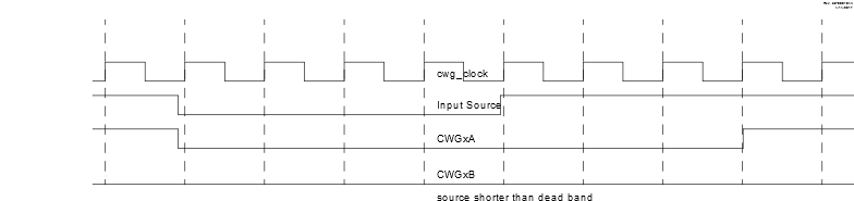 The CWGxDBF register determines the duration of the dead-band interval on the falling edge of the input source signal. This duration is from zero to 64 periods of CWG clock.