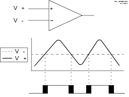 A single comparator is shown in Figure 1 along with the relationship between the analog input levels and the digital output. When the analog voltage at VIN+ is less than the analog voltage at VIN-, the output of the comparator is a digital low level. When the analog voltage at VIN+ is greater than the analog voltage at VIN-, the output of the comparator is a digital high level.