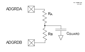 Figure 1 shows a typical guard ring circuit. CGUARD represents the capacitance of the guard ring trace placed on the PCB board. The user selects values for RA and RB that will create a voltage profile on CGUARD, which will match the selected acquisition channel.