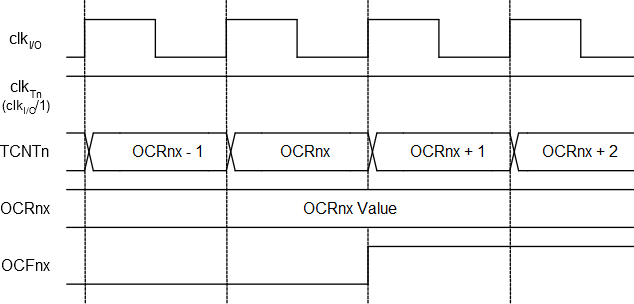 Note: The “n” in the register and bit names indicates the device number (n = 1, 3, 4 for Timer/Counter 1, 3, 4), and the “x” indicates Output Compare unit