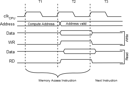 The internal data SRAM access is performed in two clkCPU cycles as described in the following Figure.