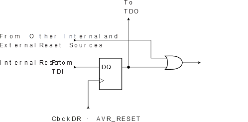 The Reset Register is a Test Data Register used to reset the part. Since the AVR tri-states Port Pins when reset, the Reset Register can also replace the function of the unimplemented optional JTAG instruction HIGHZ.