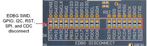 therefore all connections from the EDBG and the on board 3.3V regulator to the ATSAME54P20A have to be removed.