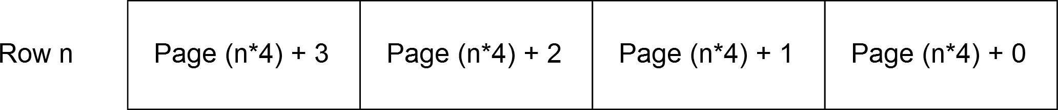 The NVM is organized into rows, where each row contains four pages, as shown in the NVM Row Organization figure. The NVM has a row-erase granularity, while the write granularity is by page. In other words, a single row erase will erase all four pages in the row, while four write operations are used to write the complete row.