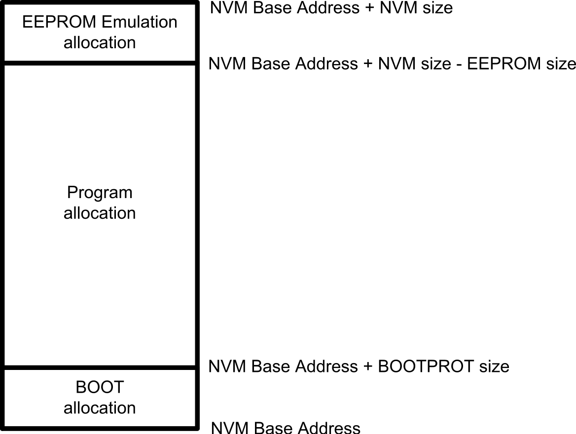 In addition, a boot loader section can be allocated at the beginning of the main array, and an EEPROM section can be allocated at the end of the NVM main address space.