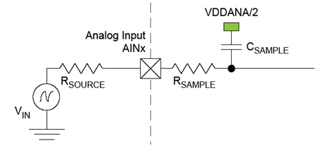 | Differential mode Number of ADC clock cycles SAMPCTRL.OFFCOMP=0 SAMPLEN corresponds to the decimal value of SAMPCTRL.SAMPLEN[5:0] register | resolution 12 bit (CTRLC.RESSEL=0) | - | SAMPLEN+13 | - | cycles | |