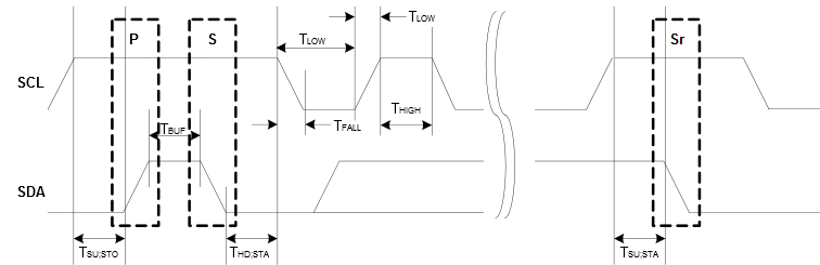 Startup Timing The minimum time between SDA transition and SCL rising edge is 6 APB