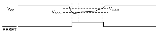 | VBOD+ | BODVDD high threshold Level | VDD level, Bod setting = 8 (default) | - | 2,86 | - | V |