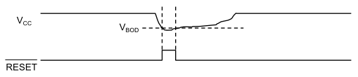 | VBOD- / VBOD | BODVDD low threshold Level | VDD level, Bod setting = 8 (default) | - | 2,8 | - | |