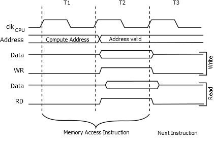 The internal data SRAM access is performed in two clkCPU cycles as described in the following Figure.