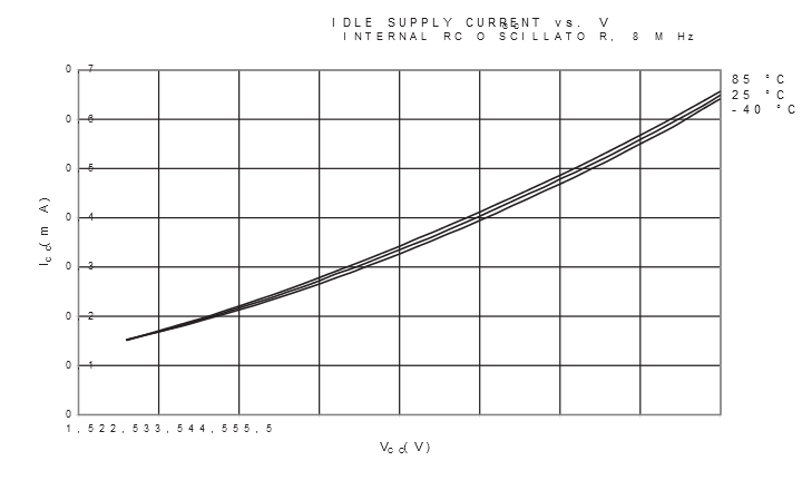 Figure 3. Idle Supply Current vs. VCC (Internal Oscillator, 8