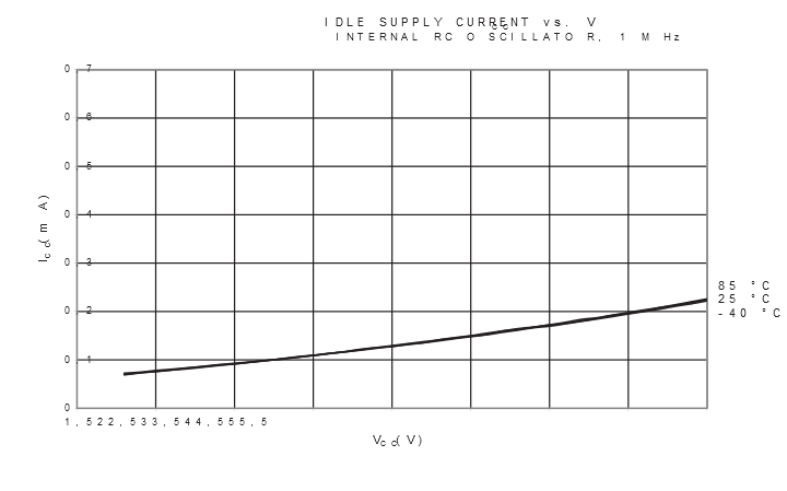 Figure 4. Idle Supply Current vs. VCC (Internal Oscillator, 1