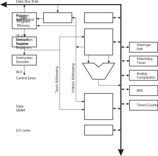 The fast-access Register File contains 16 x 8-bit general purpose working registers with a single clock cycle access time. This allows single-cycle Arithmetic Logic Unit (ALU) operation. In a typical ALU operation, two operands are output from the Register File, the operation is executed, and the result is stored back in the Register File – in one clock cycle.
