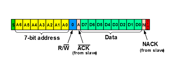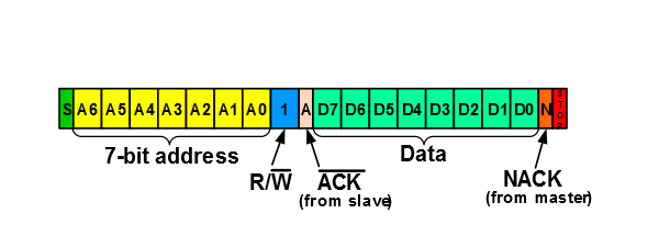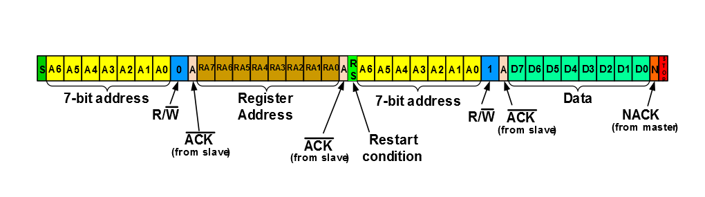 Once a slave has acknowledged its address, the master begins to receive data from the slave or transmits data to the slave. Data is always transmitted Most Significant bit (MSb) first. When the master wishes to halt further communication, it transmits either a Stop condition, signaling to the slave that communication is to be terminated, or a Restart condition, informing the bus that the current master wishes to hold the bus to communicate with the same or other slave devices.