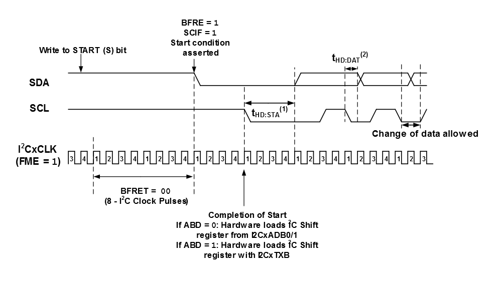 0), or by writing to I2CxTXB (when ABD = 1). When the Start condition is