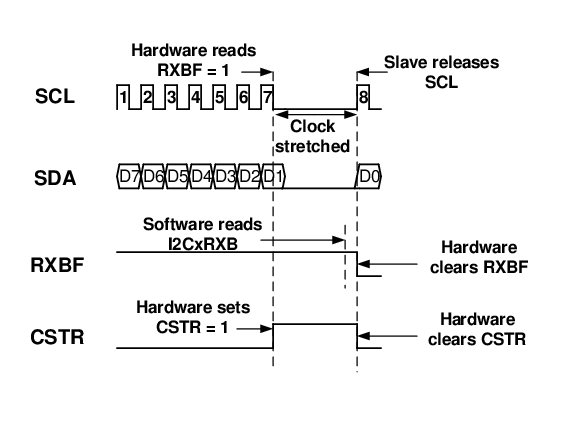 CSTR. When the slave has read the data in I2CxRXB, slave hardware
