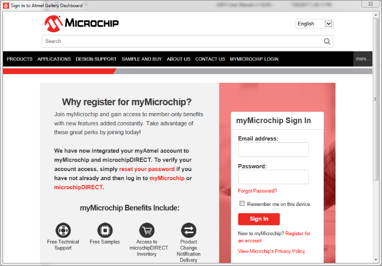 Once you click download, you will be taken to the sign-in page of the Microchip Gallery.