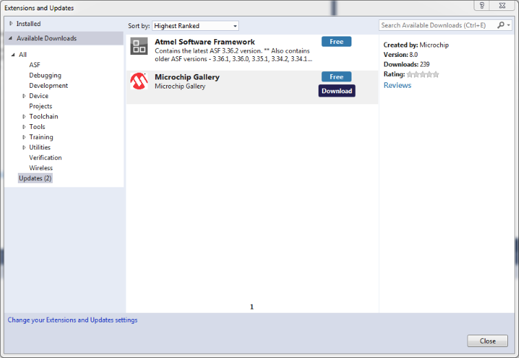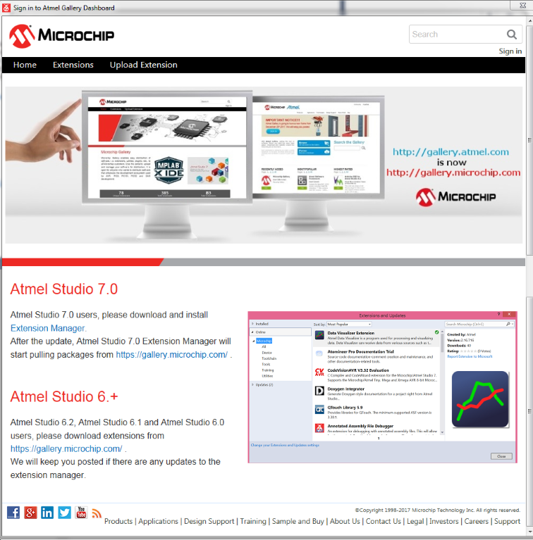 In order to download extensions, registering at the Microchip Gallery is required.