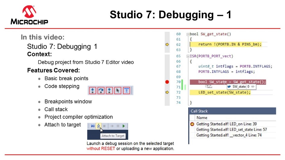 This section will introduce the debugging capabilities of Studio 7, both as video